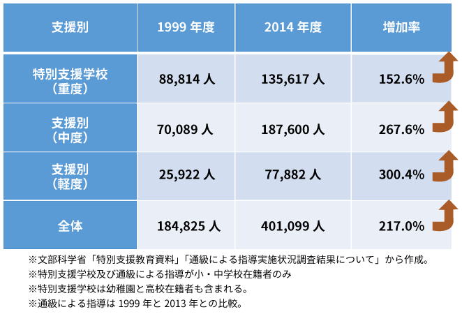 15年間で2倍以上。障害児童生徒数は増加し続けています。